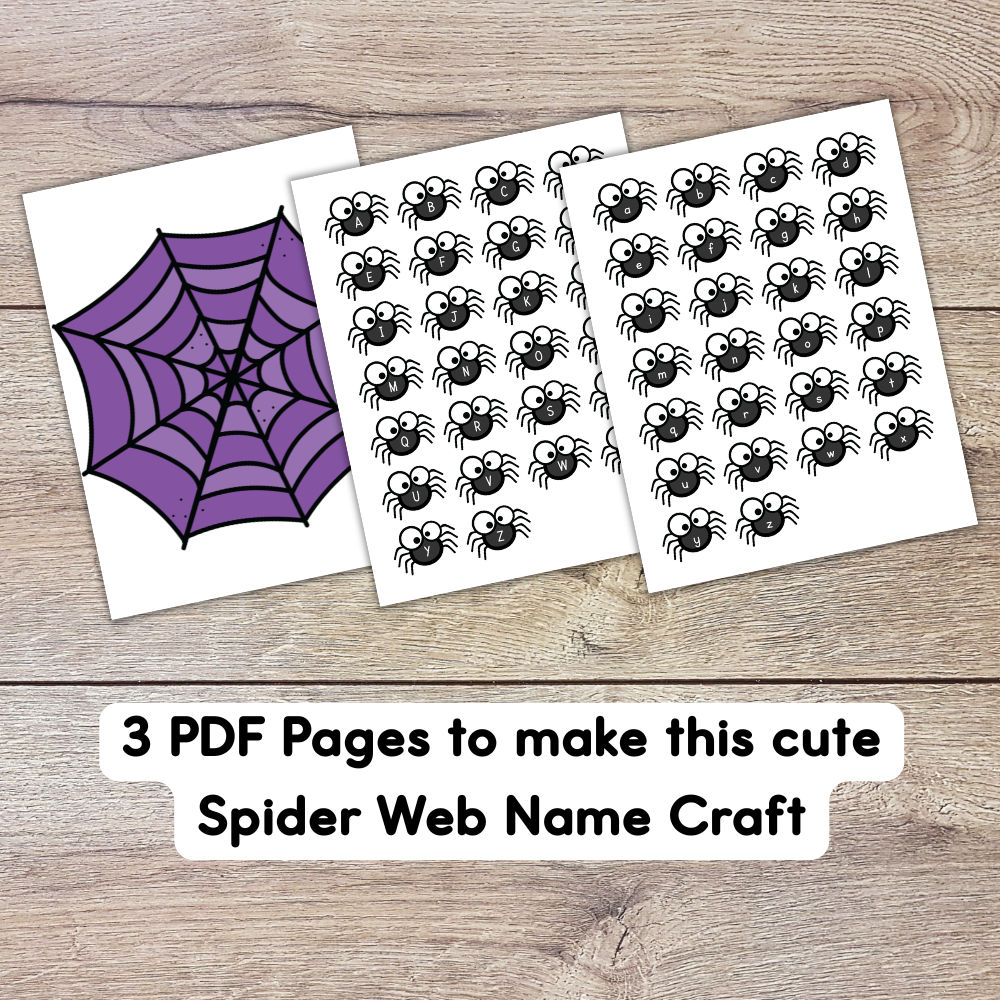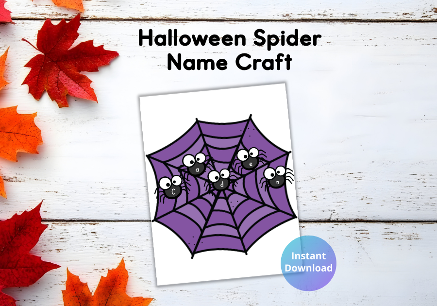 This fun spider-themed name craft includes one spider web page, one page of uppercase letter spiders, and one page of lowercase letter spiders. Simply cut out the letter spiders and glue them onto the web to spell your child’s name! A perfect hands-on activity for practicing letters, name recognition, and fine motor skills.