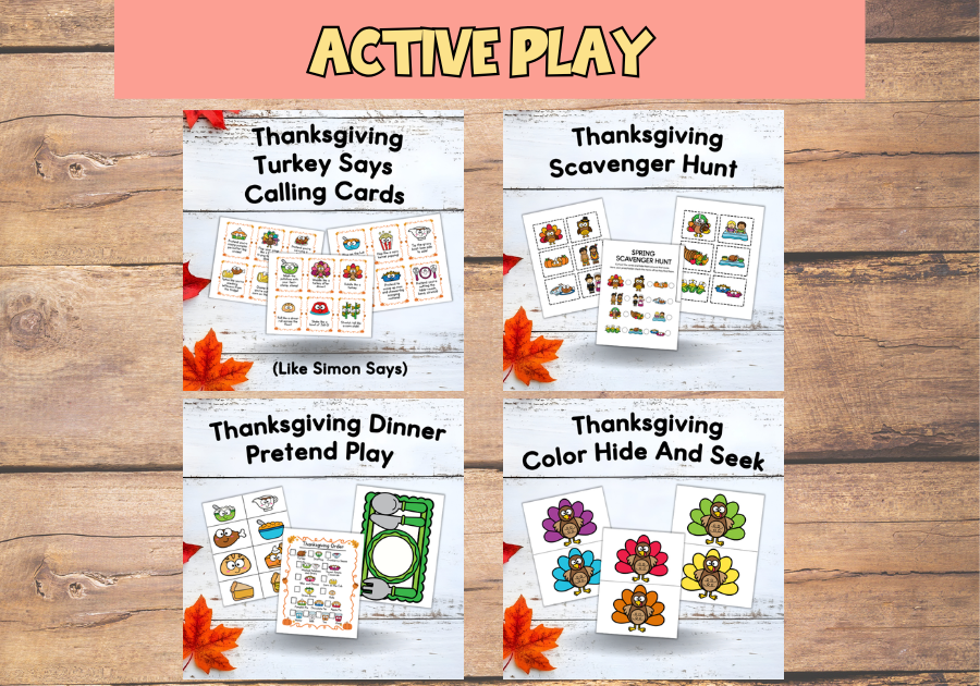 Celebrate Thanksgiving all month long with 20 low-prep, kid-friendly preschool activities covering literacy, math, fine motor, crafts, dramatic play, movement, plus snack, book, and music recommendations.